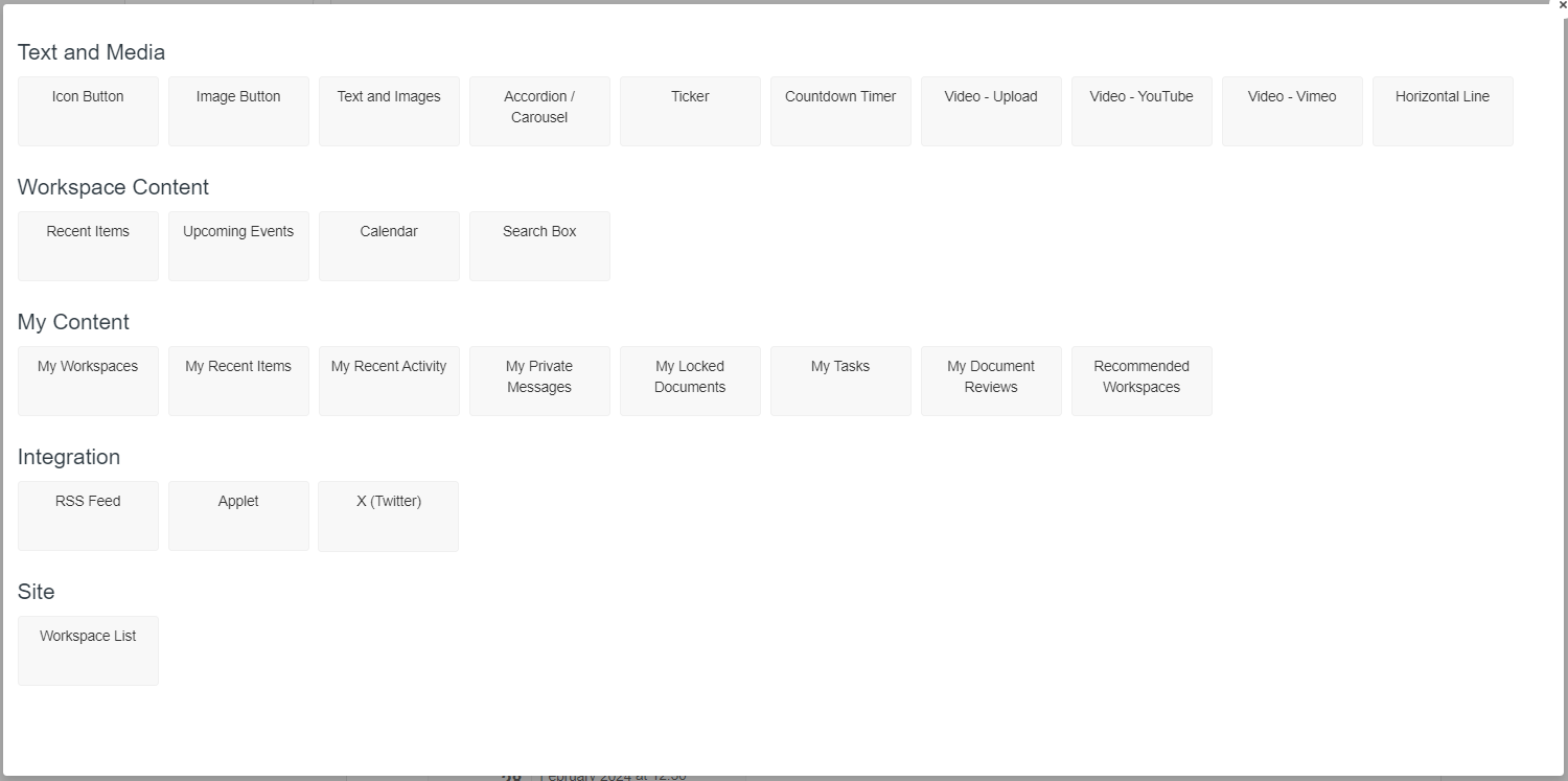 Workspace & Folder Dashboard "Configure/Add item" Menu